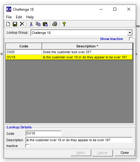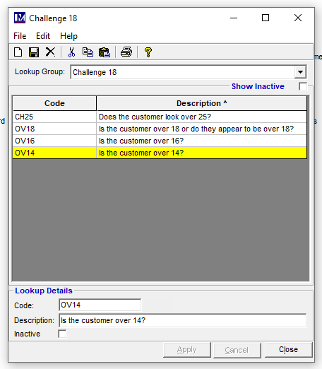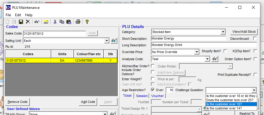 It is possible to set up challenge questions on PLU's to prompt till operators to check a customers age.