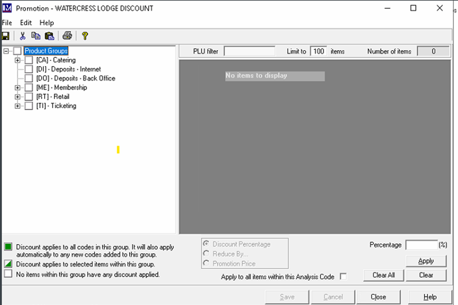 Q) - I’ve set up a promotion code “WATLODGEDIS” to give 20% off certain tickets. When I go to the button configuration on the till and try to create the promotion button. In the drop down “promotion scheme” dropdown there are no promotions listed. Can you advise how I associate a scheme with a button?