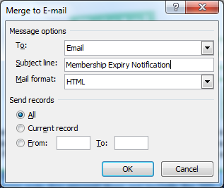 Next click on ‘OK’ to merge the required records into a Microsoft Word document.