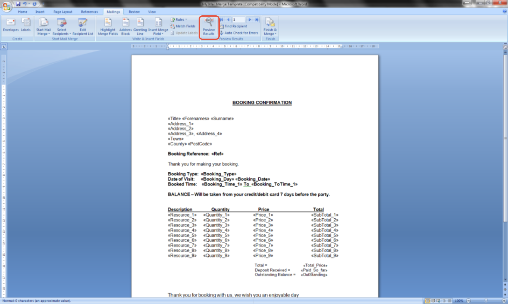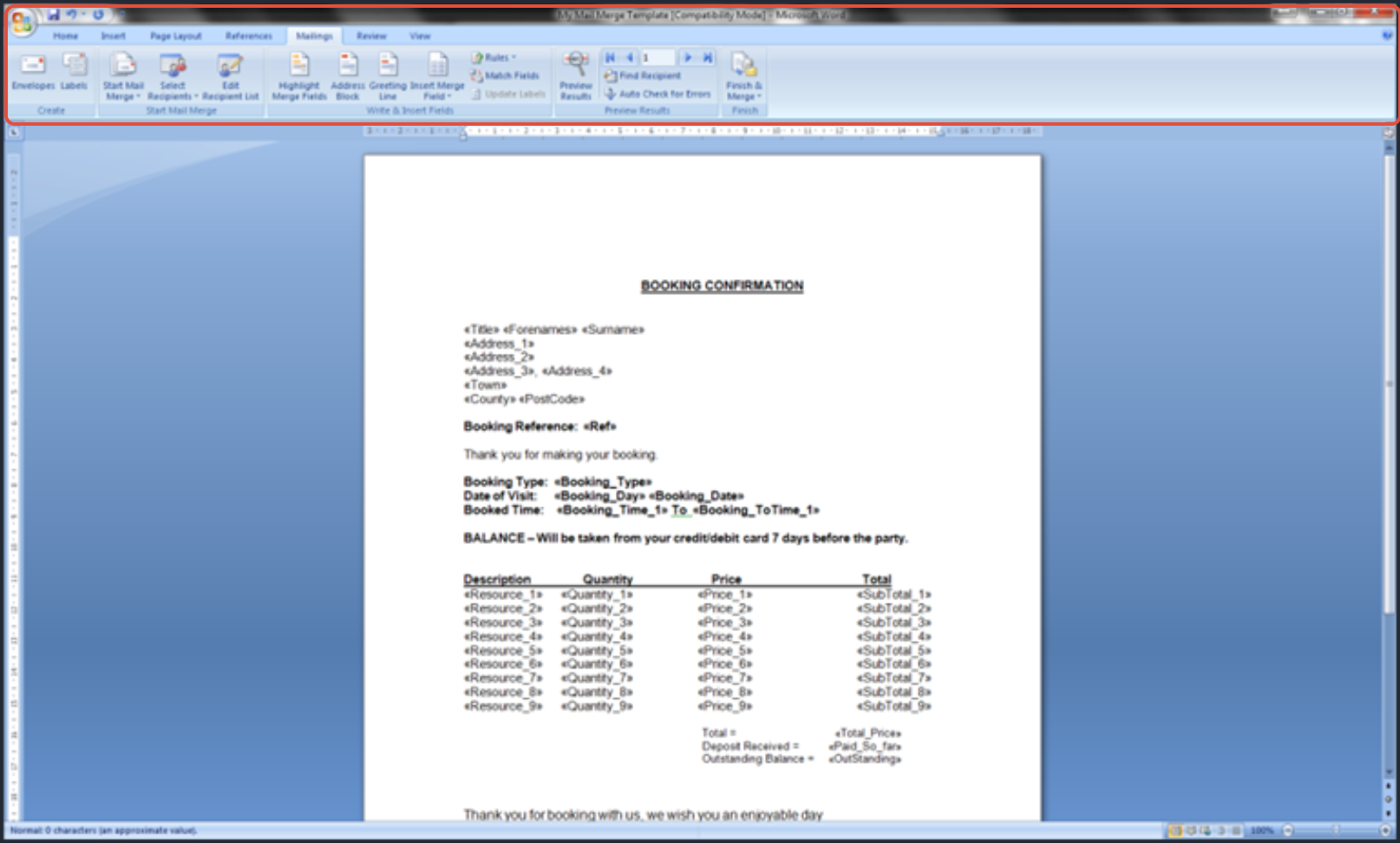 Please note that there is an issue with most versions of Microsoft Word when using mail merges whereby the toolbars at the top of the screen will not work unless you first minimise then maximise this window. Please minimise then maximise this window before proceeding.