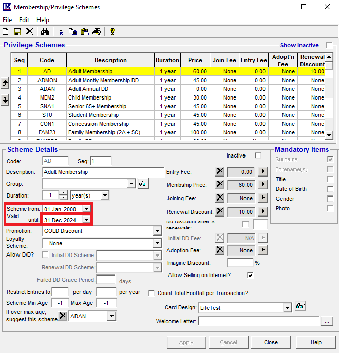 If you extend this into the future, the correct membership duration will be calculated, until the Scheme Valid Until date is inside the duration of the membership set.