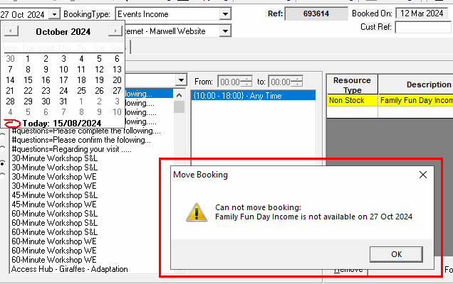 Then try and move the booking again.