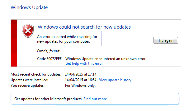 If the till was originally provided by Merac / K3 the Windows updater service may have been disabled, this will need to be re-enabled and once started try again.