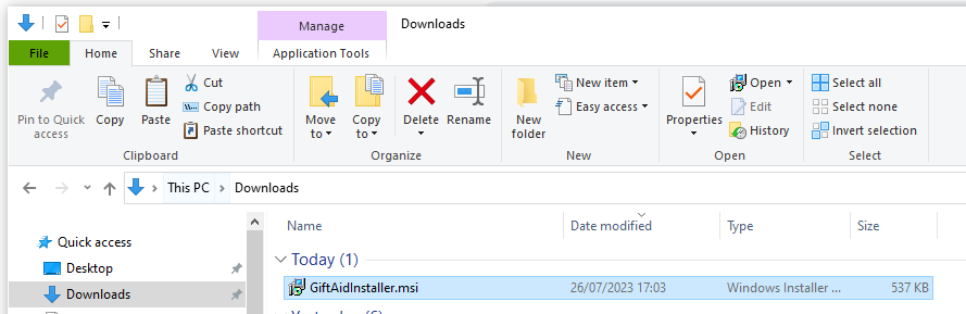 Once removed, please run the downloaded GiftAidInstaller.msi