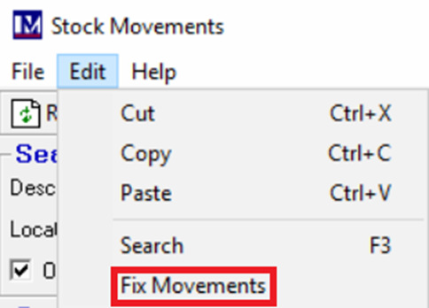 Then, within the Stock Movements window, click Edit in the top-left of the Stock Movements screen. Finally click Fix Movements to recalculate these movements for that one item.