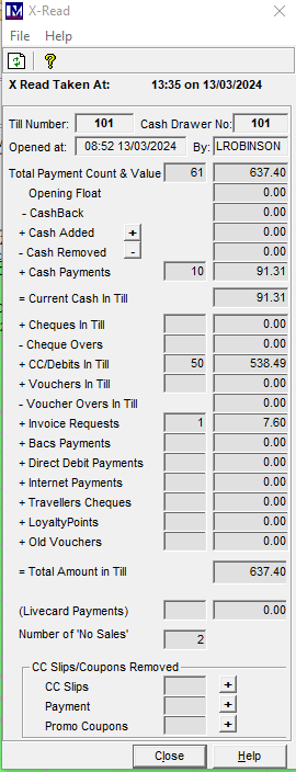 Another sign is that if you open the till details and there are zero transactions and figures processed through the till. This is a sign that your till is not sending the transactions to the database or that they are stuck in the SQL table.