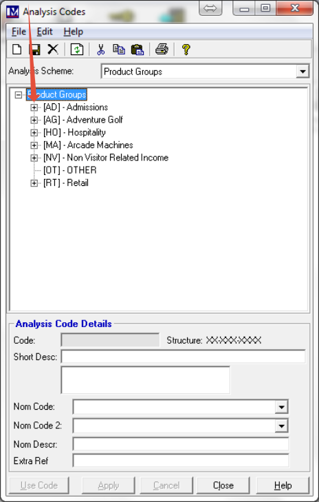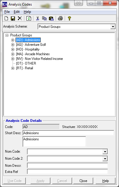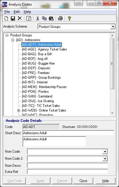 If you then need a more detailed break-down for your sales reports than just the first-tier analysis code, you can add a second tier to give the level of detail required. For example, if you wanted to get a report for ‘Admissions’ total sales but also want a breakdown from this into further categories (‘Analysis Codes’) for ‘Adults’, ‘Children’ and ‘Senior Citizens’, then these would be added as second-tier ‘Analysis Codes’ under ‘Admissions’.