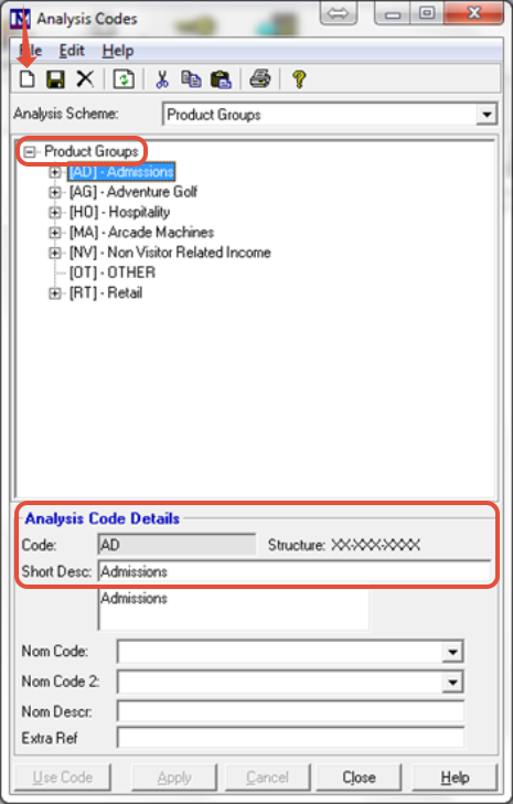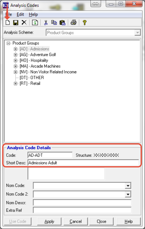 Repeat as required until all 1st tier ‘Analysis Codes’ have been set up.
