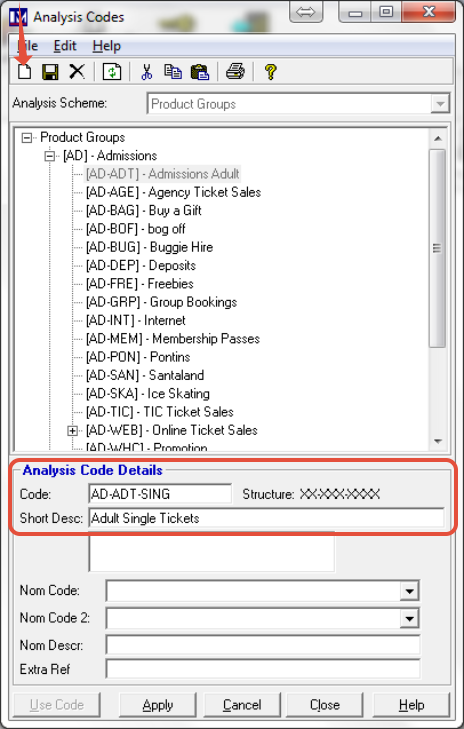 as required. Taking the above example, you may need to split the ‘Adults’ second-tier analysis code into categories for ‘Adult Single Tickets’ and ‘Adult Group Tickets’. In which case these would each be set up as a third tier under the ‘Adults’ analysis code.