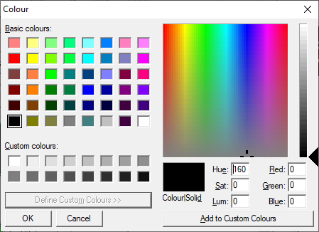 Click the box to the right of ‘Back Colour’ to select the required background colour, using the colour selector screen.