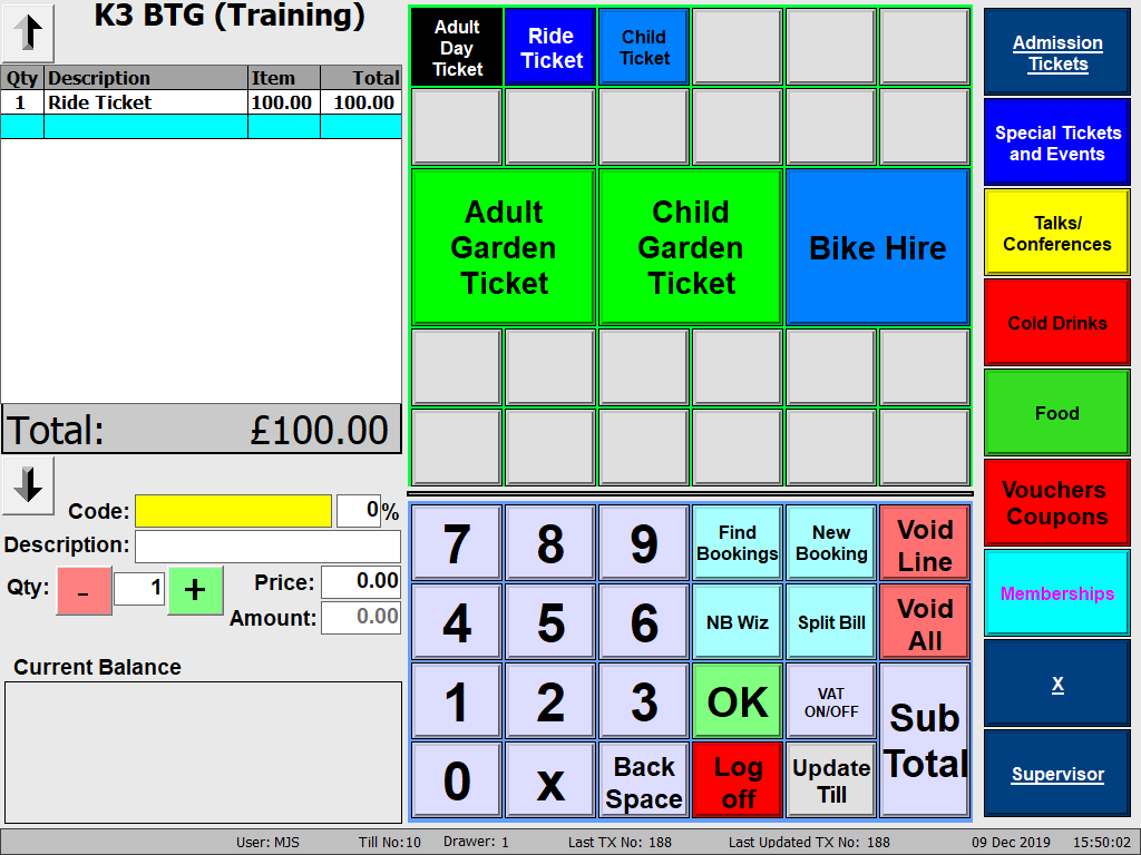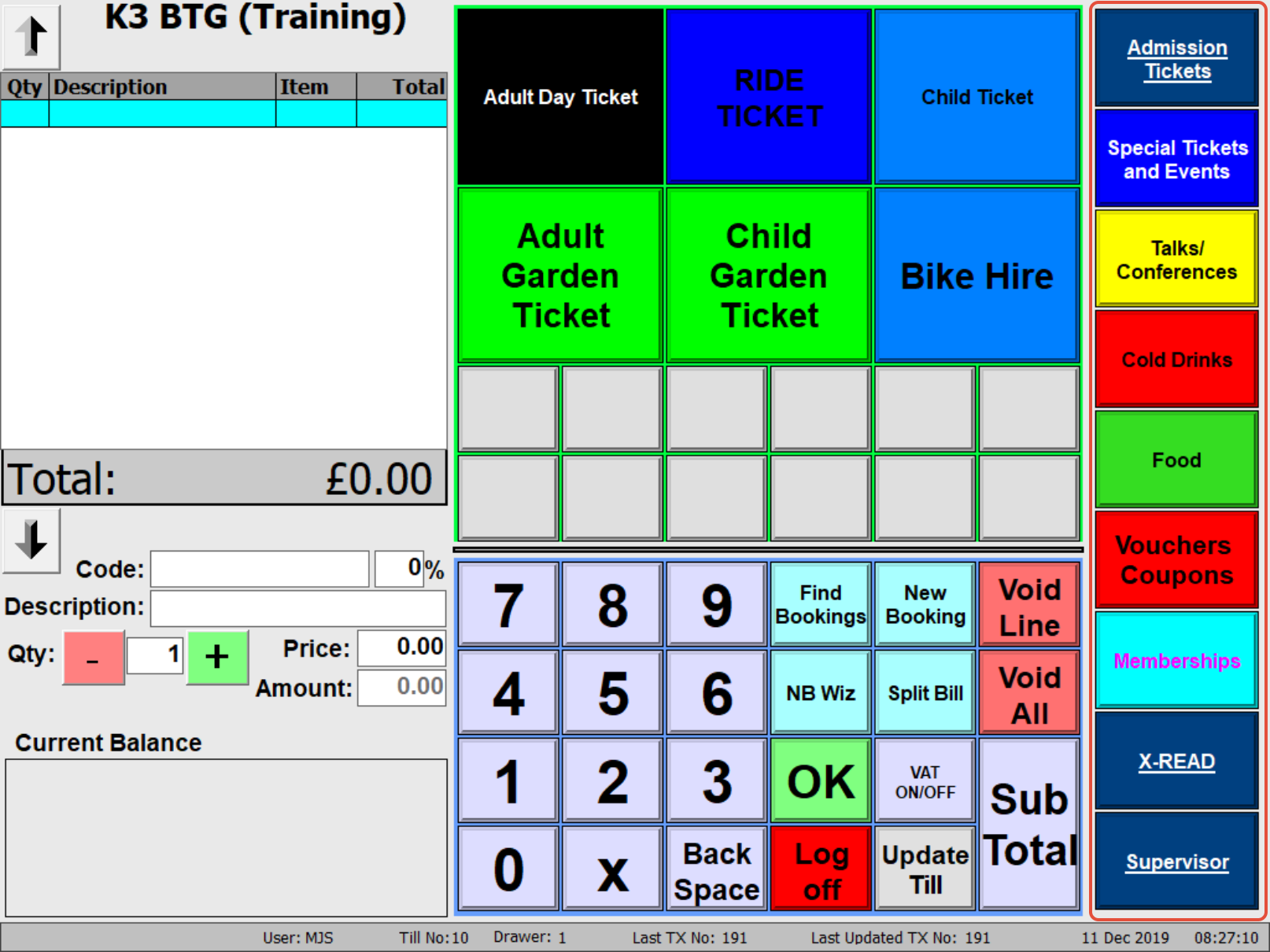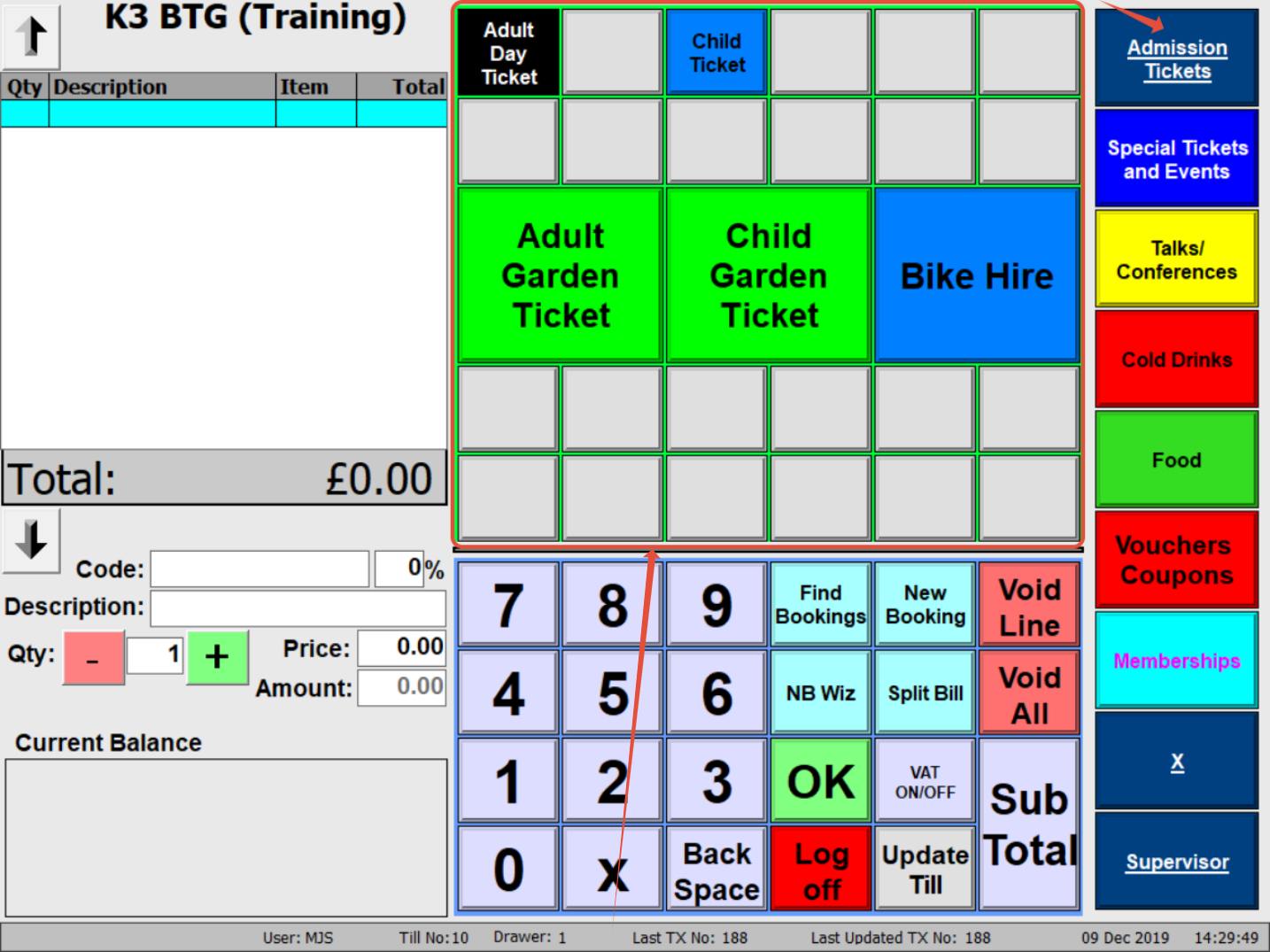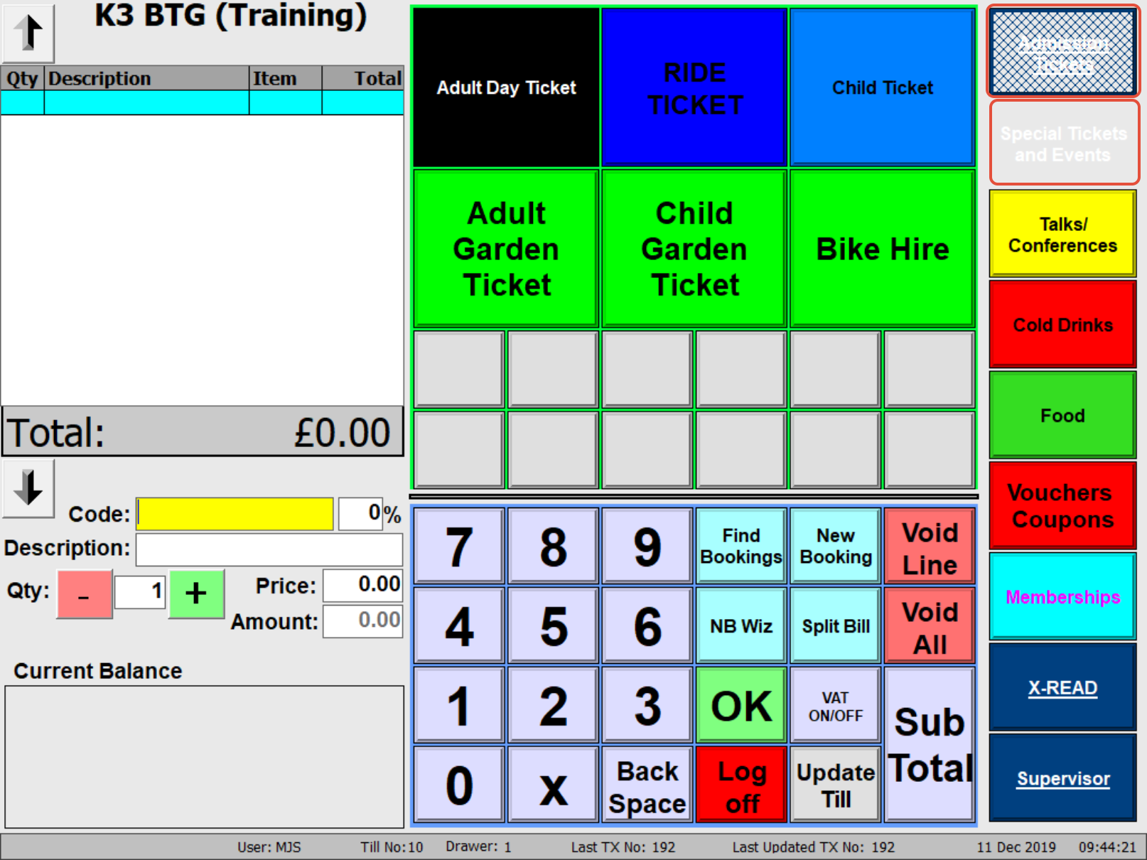 In the ‘Merac’ back office software you can configure your ePoS till screens to be as required to meet the needs of your business, whether this is for admissions, hospitality or retail requirements. Till buttons can be used for a wide range of tasks but the focus of this user guide is to show you how to assign an item that you sell (know as a PLU) to a till button
