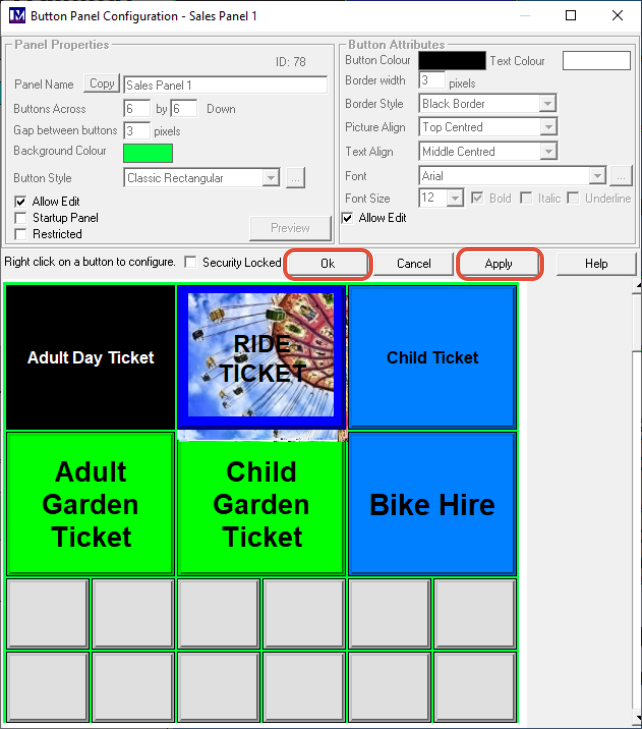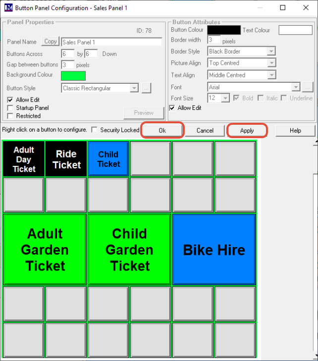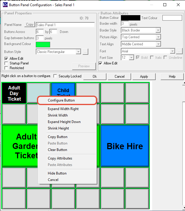In order to edit a button, first click on the relevant ‘Sales Panel’ to bring up the buttons in this panel.