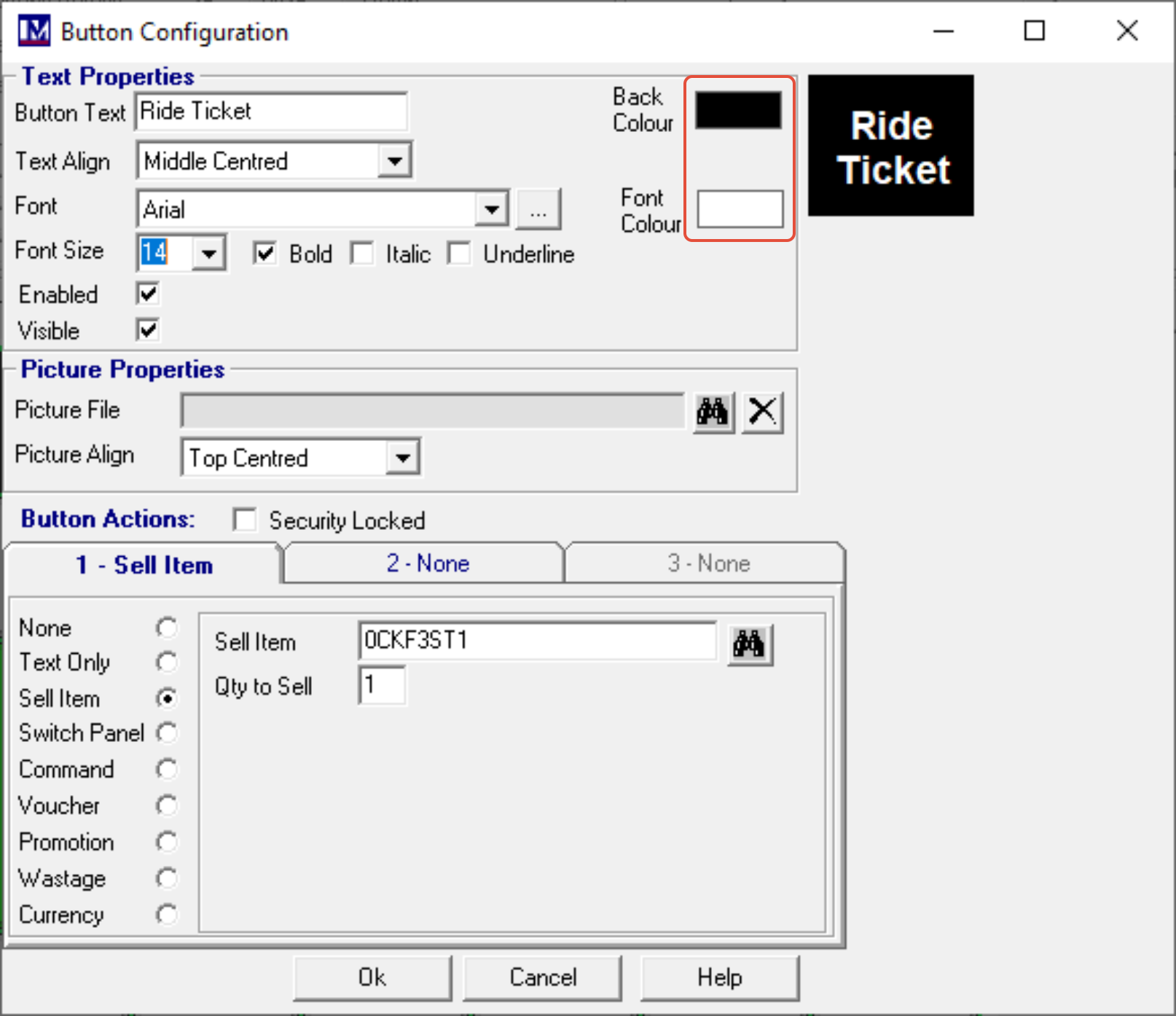 | Font Colour: | You can pick the button’s font colour by left-clicking this button |