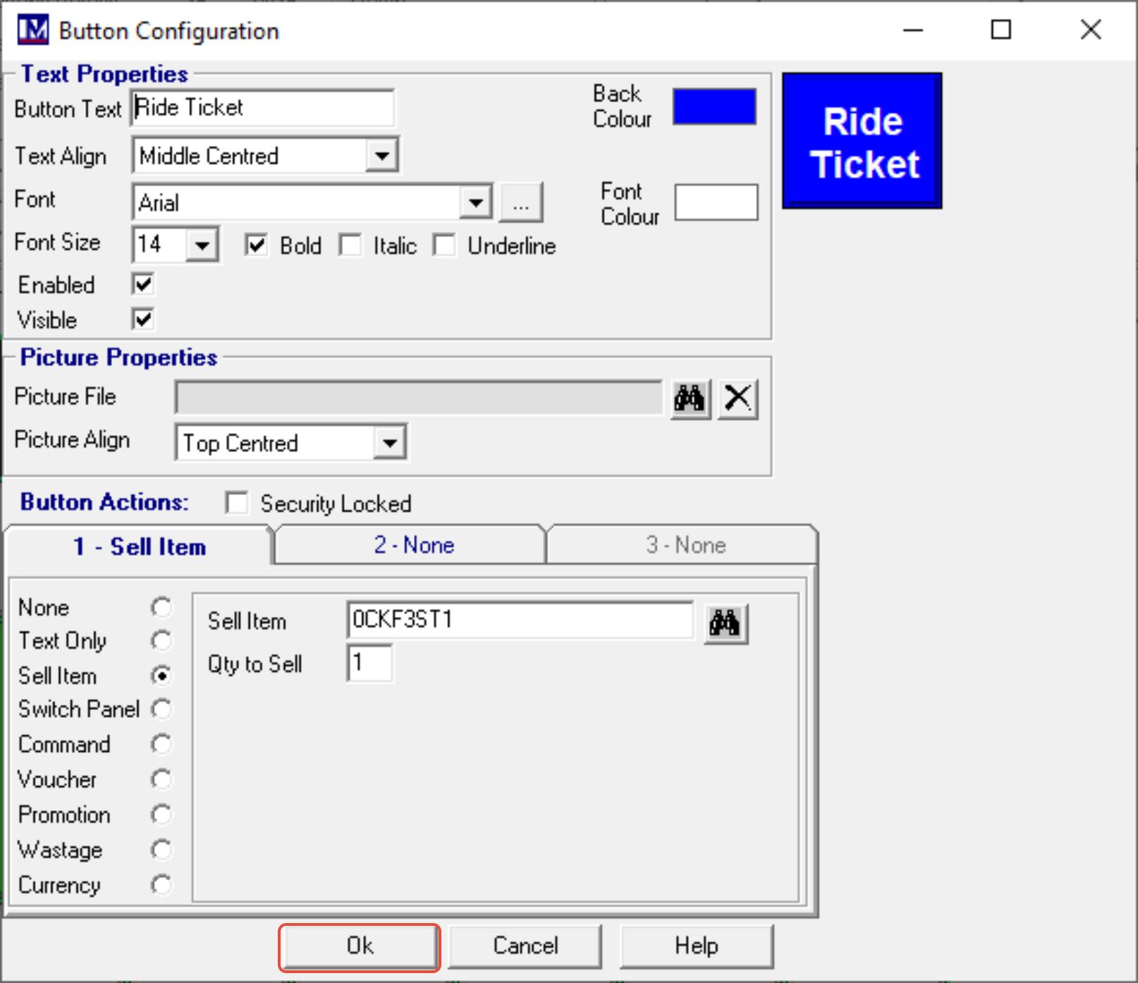 | Voucher: | If ‘Vouchers’ have been set-up, this is used to assign a button to a ‘Voucher’ denomination. |