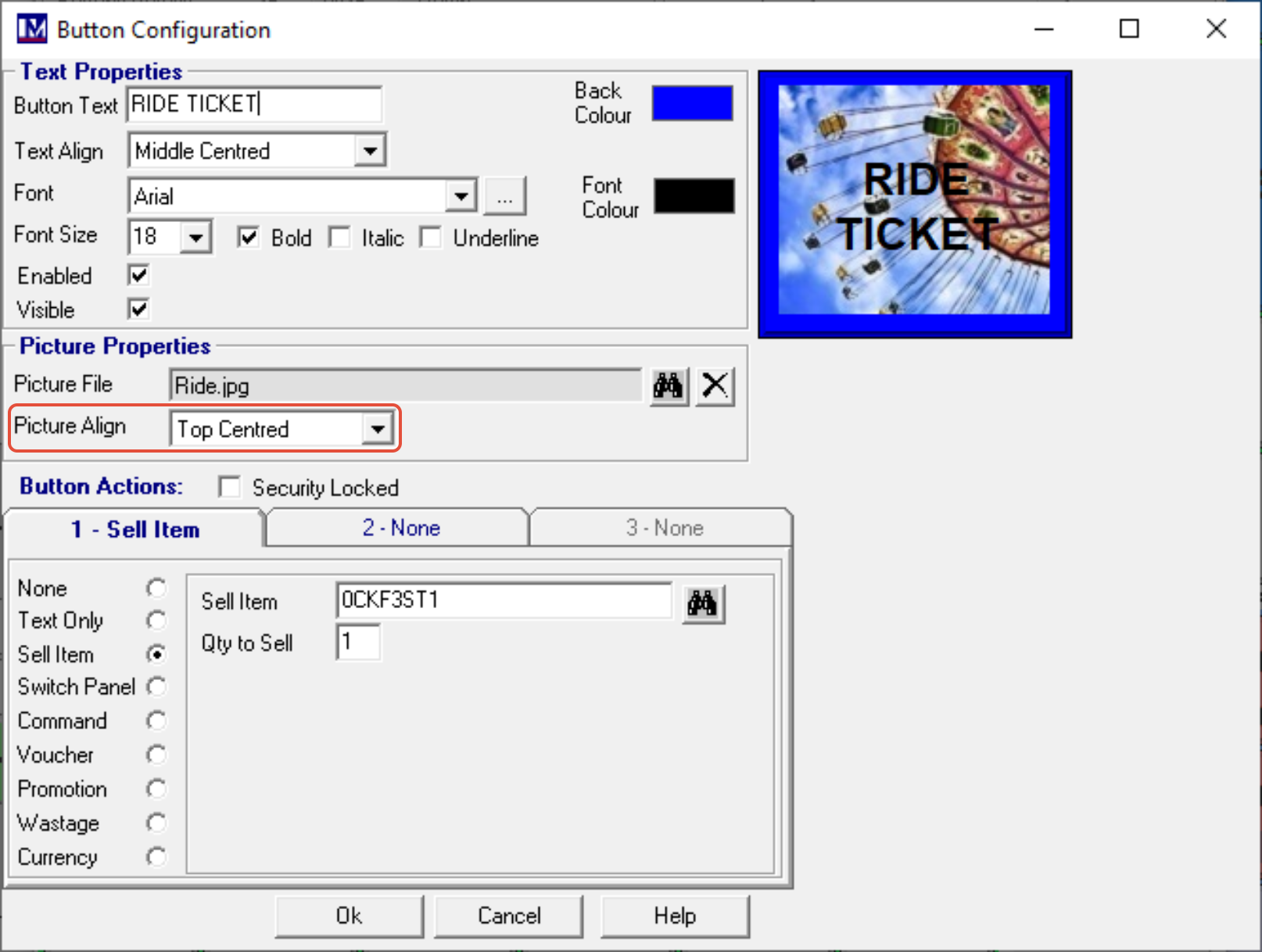 | Picture Align: | Select the required alignment for the image on the button using this drop-down. |