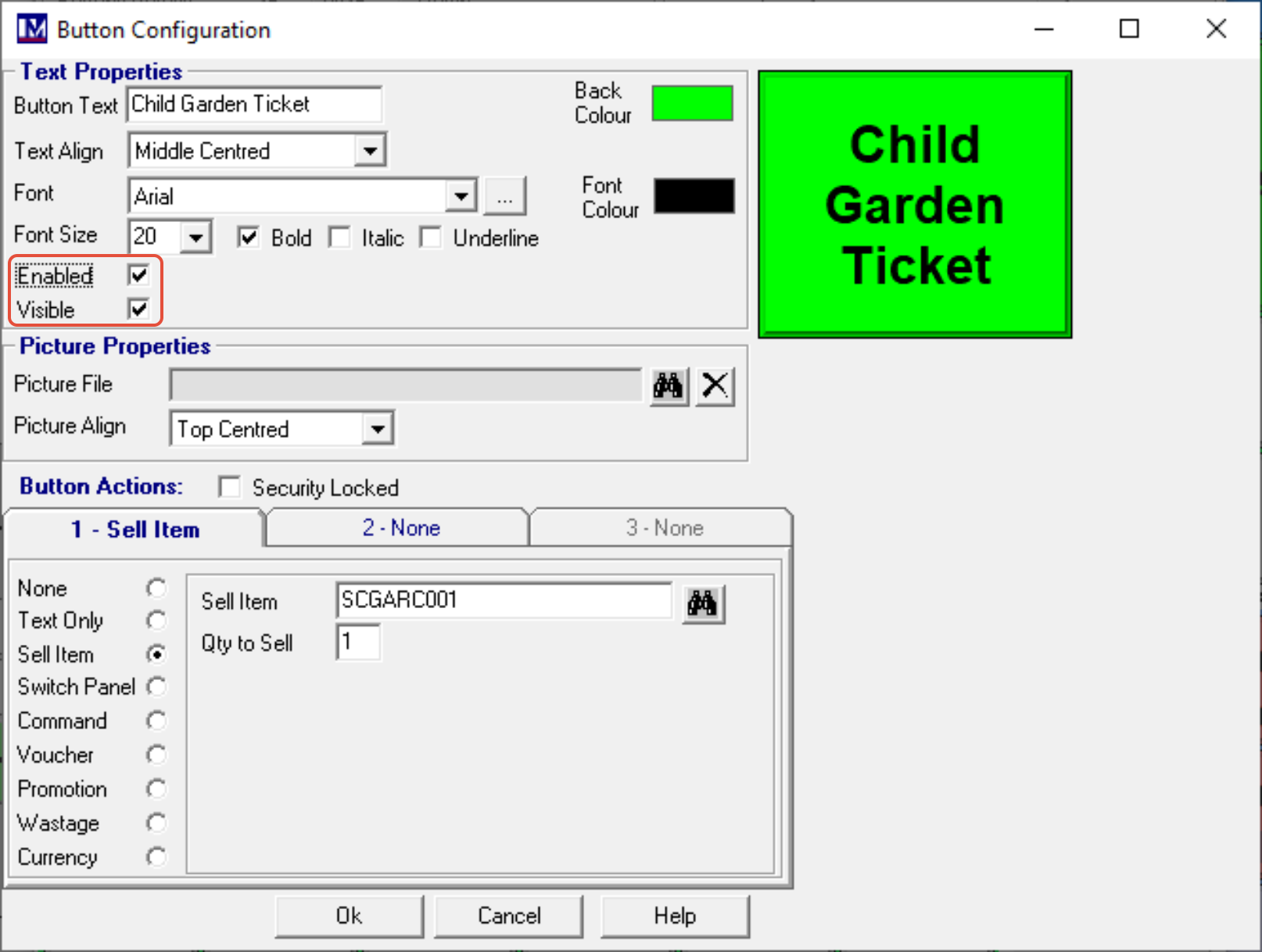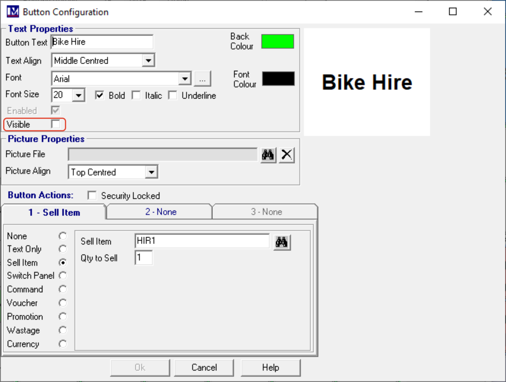 | Visible: | You can either hide or show this button on the till screen using this tick-box. |