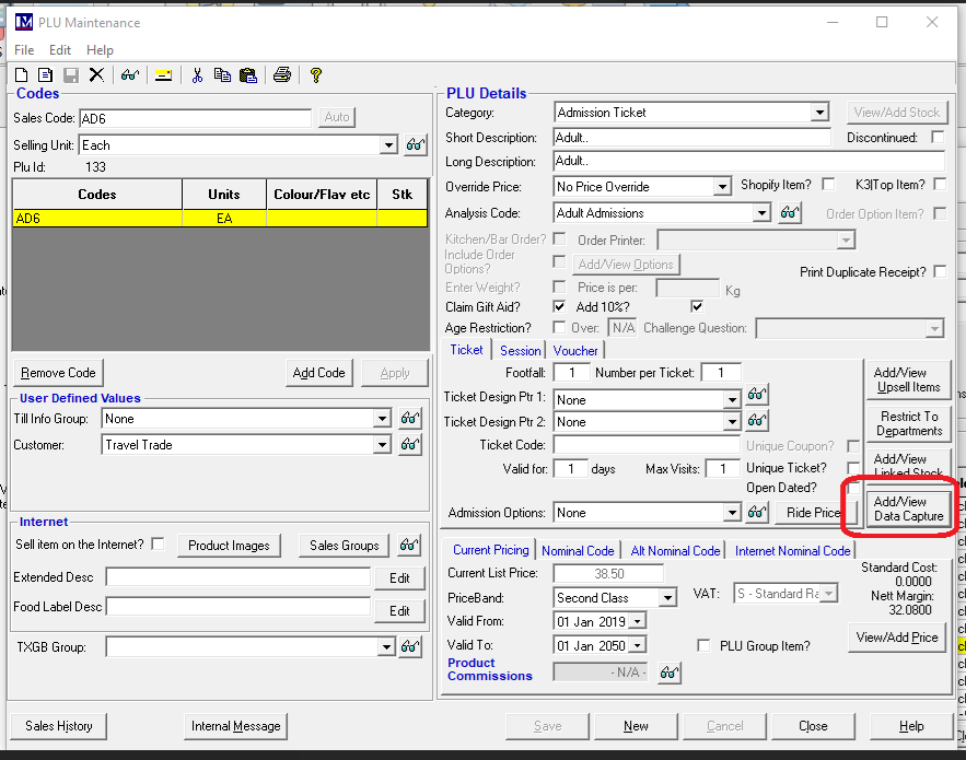 Data captures can be set up online in the same way as in house data captures, however the website does not take into account what option is selected within back office and will always prompt per sales line: