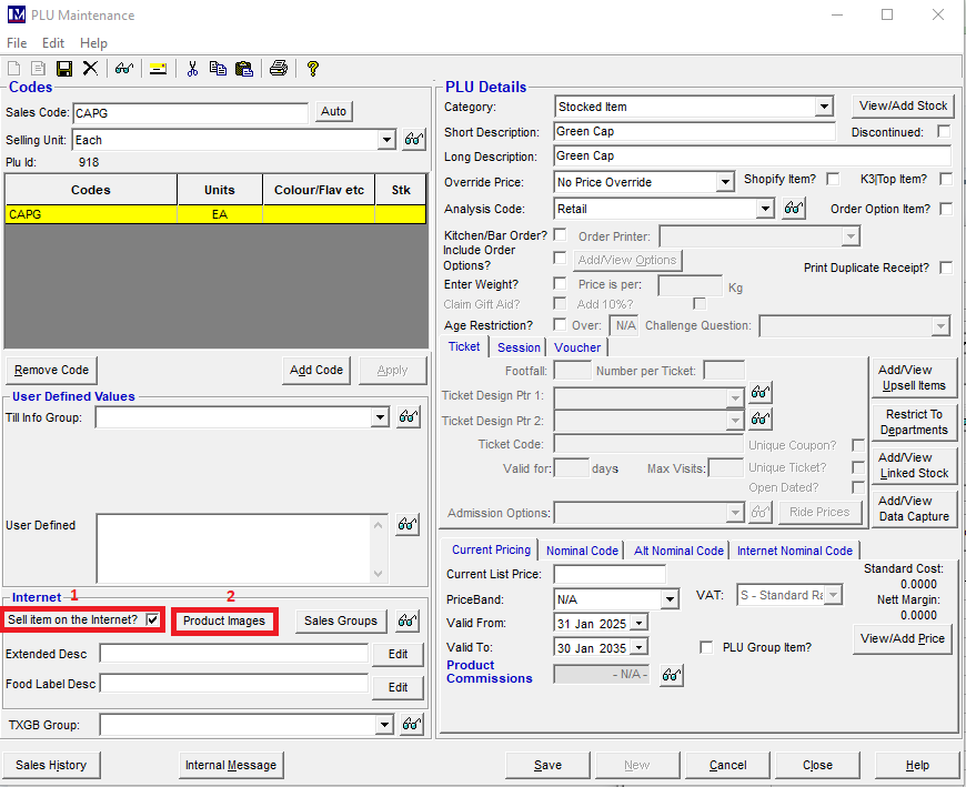 If you would like to upload images for a shop item, open the PLU maintenance screen for this record, make sure Sell item on the Internet? (1) is ticked.