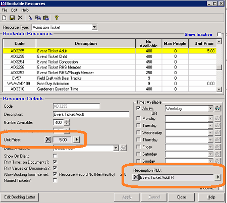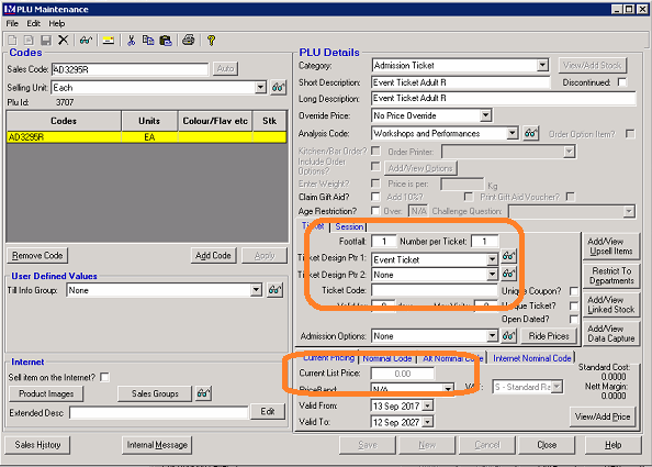 The first PLU set will be the price for the sale, the second is the redemption PLU which is used when the booking is completed at the till. The second PLU will be where the footfall and the tickets are set, as this PLU will be recalled to the till and print the tickets.