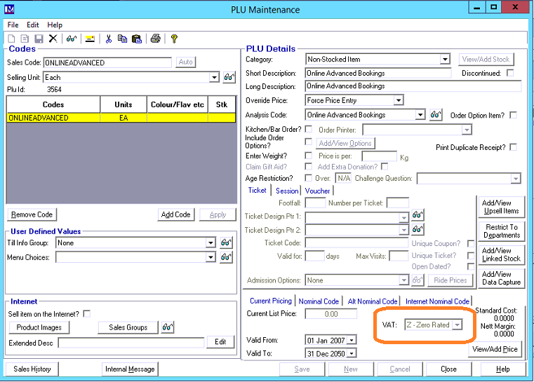 In this mode, all internet bookings will be processed as a single PLU. Bookings will be saved in Merac under the correct resource. Items sold online will be made up of different VAT codes. Normally the VAT is set to ‘Zero’ or ‘Outside Scope’. The final VAT will be calculated when the booking is redeemed, and the real PLU’s are processed the deposit is reversed out.
