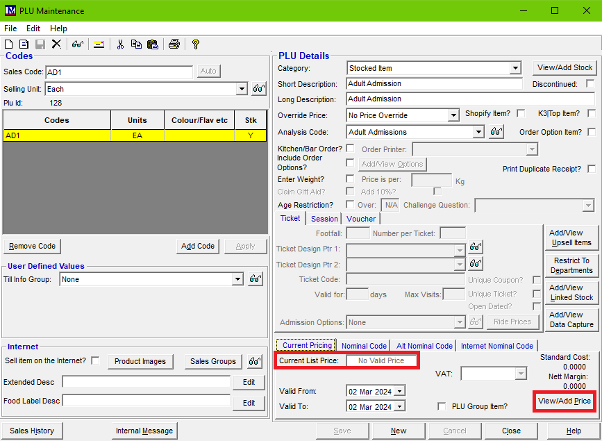 - Open the PLU Maintenance screen for this item (A quick giveaway for the cause can be due to the Current List Price showing as No Valid Price).
