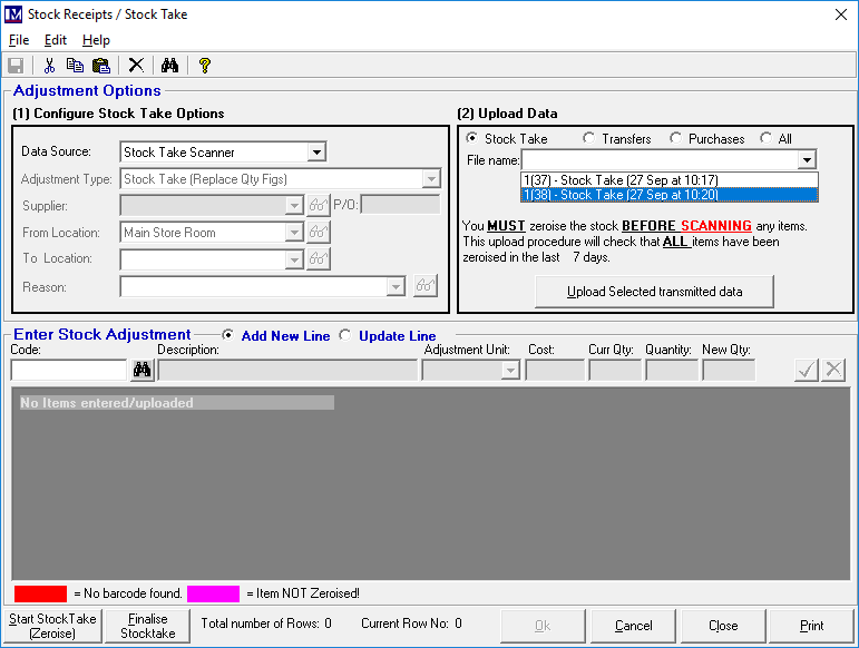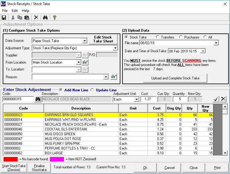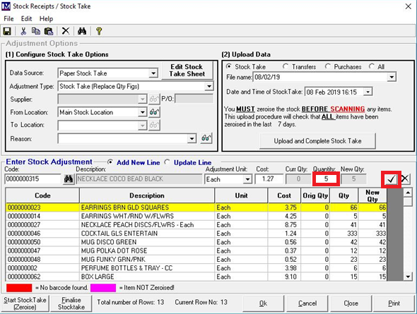N.B. at this point we recommend that you note down the name of the above zeroise and the specific date and time that you carried out this zeroise, as this may be required later to get your stocktake variance report.