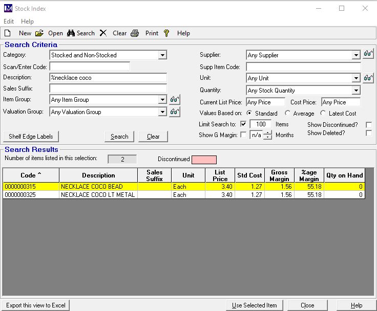 If so, please take a screenshot of the stock items listed in the above screen and save it in your preferred software.