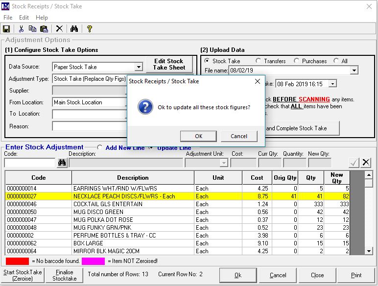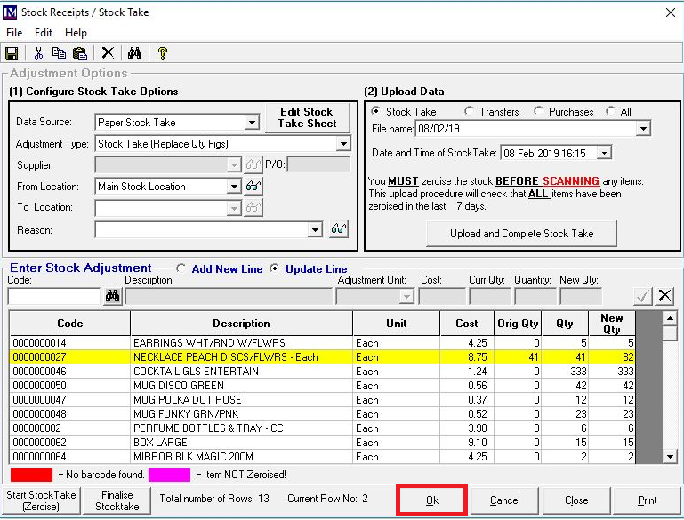 Only once you are totally sure that all the stocktake figures are correct, click on the ‘OK’ button to proceed.