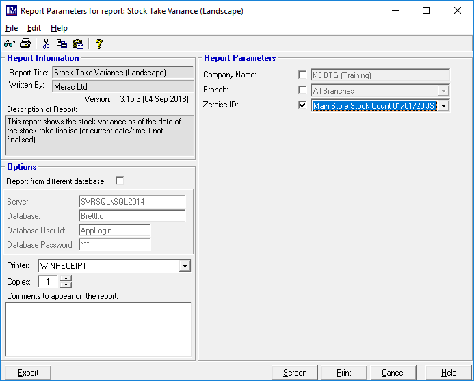 N.B. you can still get a stocktake variance report if you do not do the finalise. However, to get this report you would need to have noted down the date and time of both the specific zeroise and stocktake count!