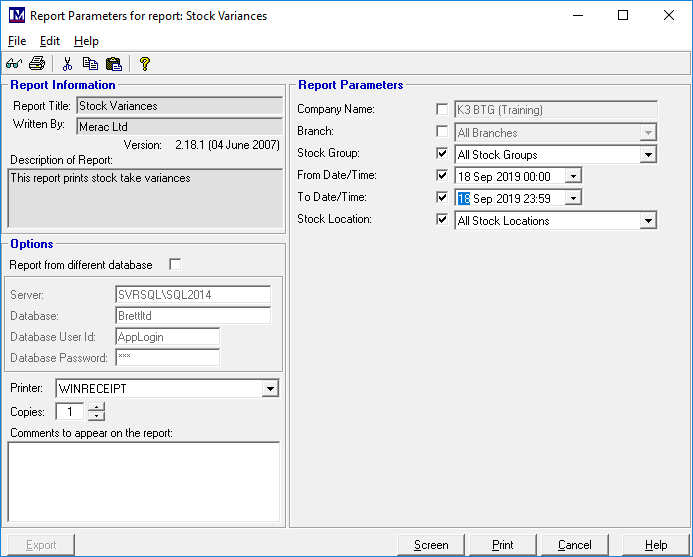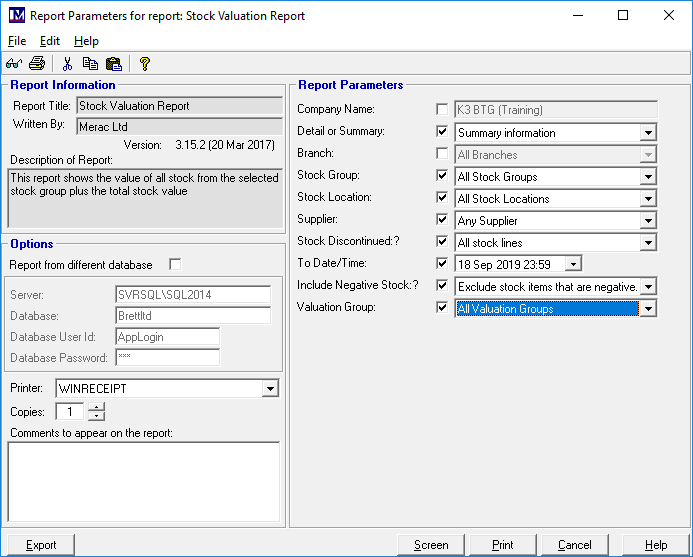- ‘To Date/Time:’ to immediately after the ‘Date and Time of Stocktake’ you selected.