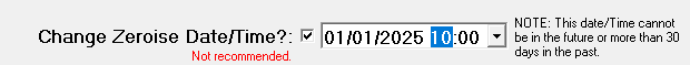 If you forgot to zeroise and are happy do this retrospectively then click the box next to the 'Change Zeroise Date/Time' option so that it is ticked. You will then see some additional warning text and a date and time selector appear. Click on the dropdown arrow to the right of the date and time selector, then a calendar will pop up. Use this to select the required date.