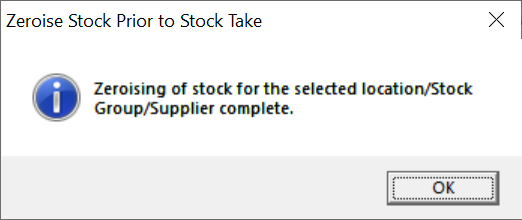 You have now performed a ‘zeroise’ for the selected criteria, which is the start of the stocktake process