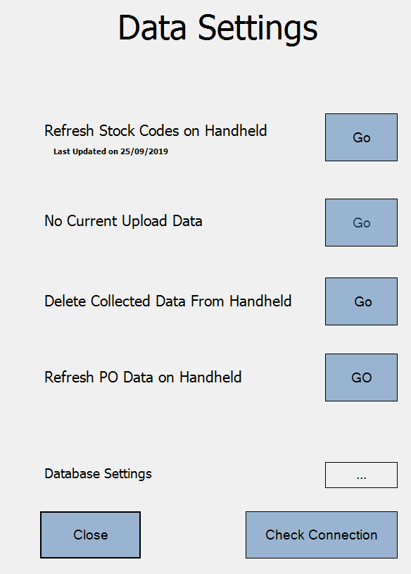 Please note this process will permanently delete the stock count data from the device! But please be aware this process will also permanently delete any stock transfer, or purchase order data that is held on this device, so please make sure any data that is required is checked and sent to the server before carrying out this process.