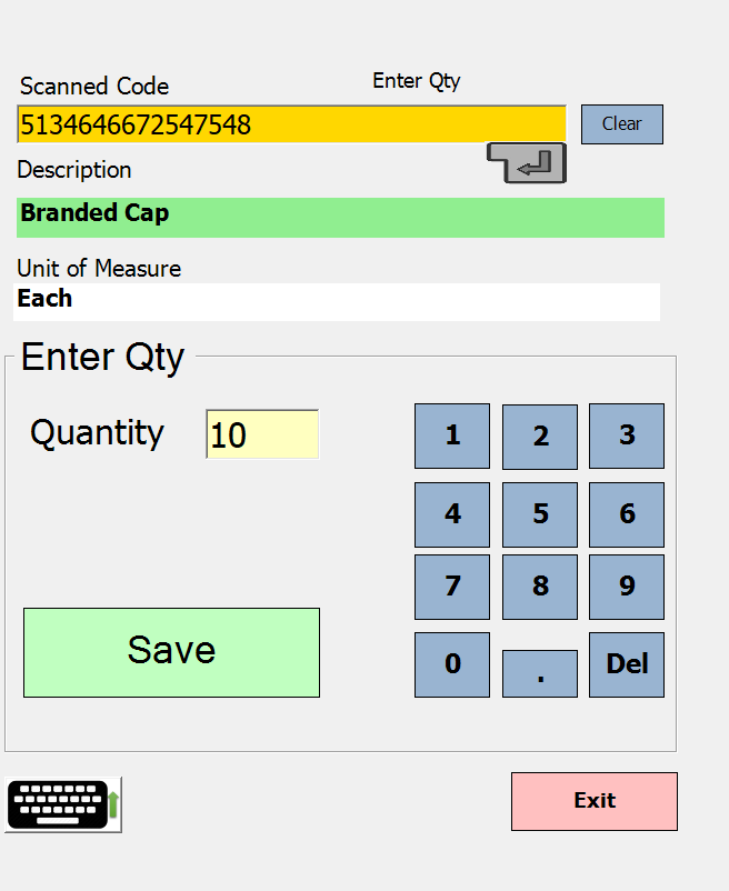 Using the pop-up keyboard, key in the required quantity and press the Enter key on the pop-up keyboard.