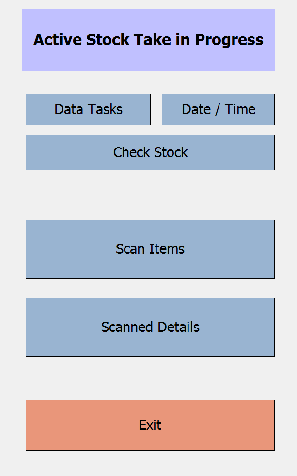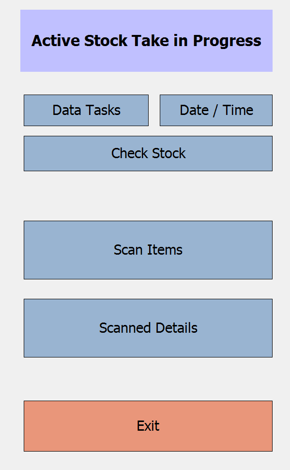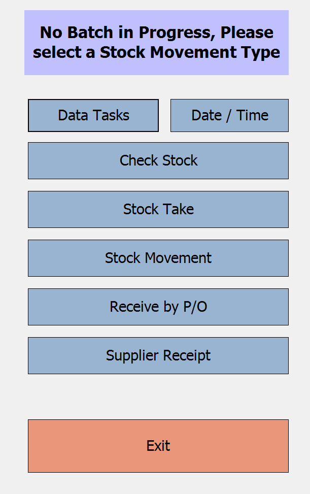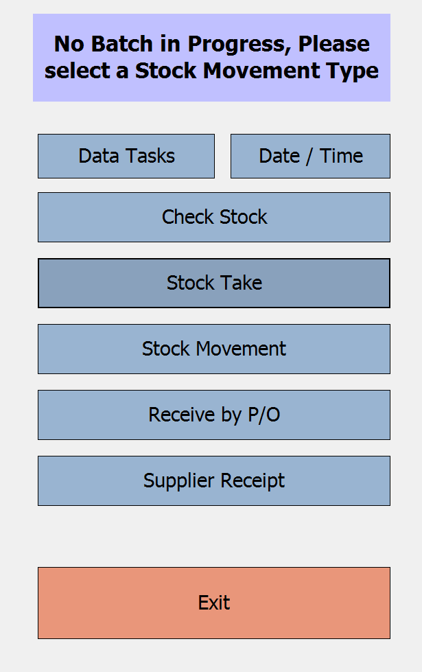 On your mobile stocktaking device open the stocktaking software so you see the below screen.