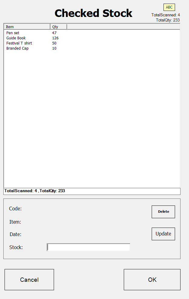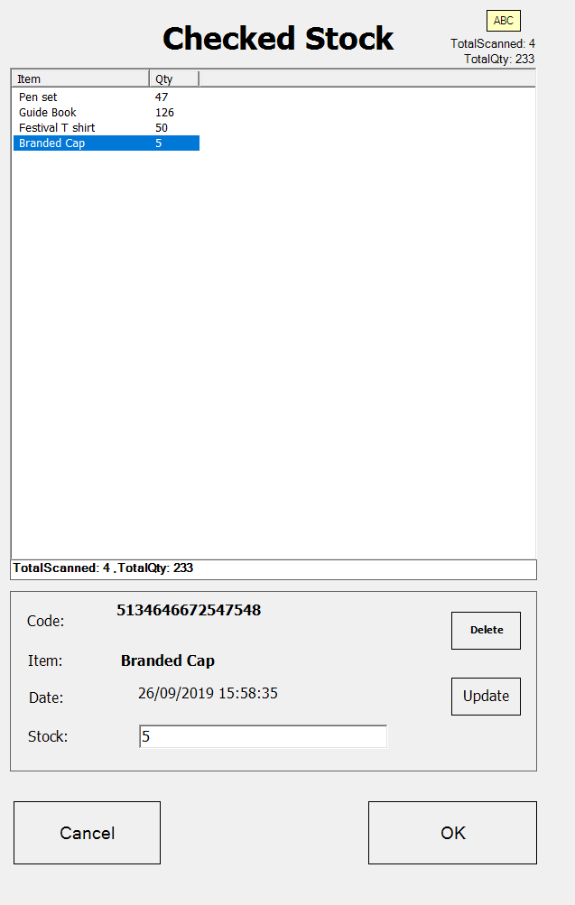 At this point you can press the ‘Scan Items’ button to continue scanning and entering the stock counts.