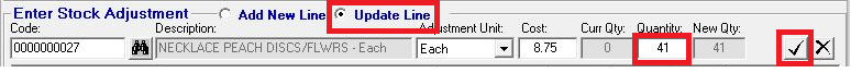 Finally click on the tick button to accept the new quantity.
