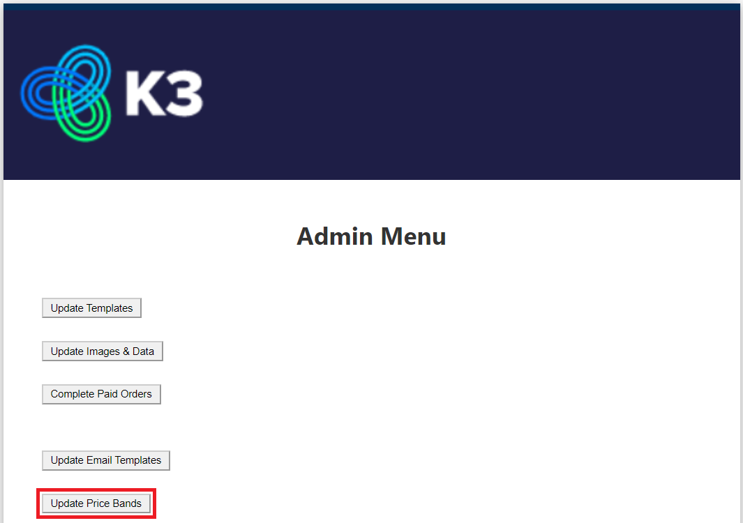 To access the online ‘Price Bands’ functionality, click ‘Update Price Bands’.