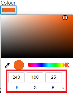 Click the ‘Colour’ box and the easiest way is to enter the specific colour code in the 'R' 'G' 'B' fields if you have this code.