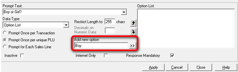 If you want a data capture prompt to appear on both the till and for online sales you would need to create two data capture questions, one with ‘Internet Only’ box ticked.