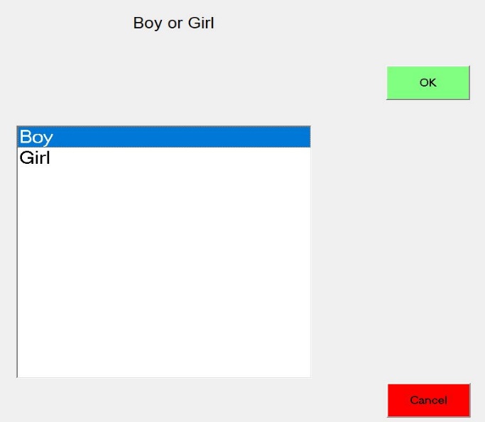 Child’s gender: (Data Type: Option List)