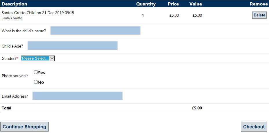 (For example: on birthday bookings you may wish to capture the birthday child’s name)