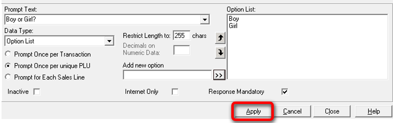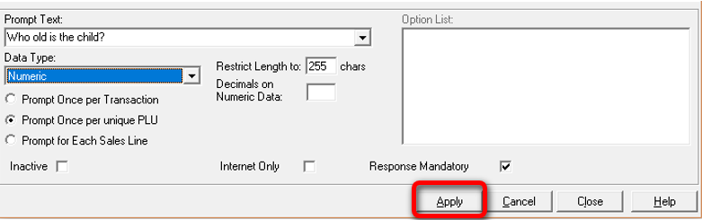 Select ‘Prompt once per unique PLU’.