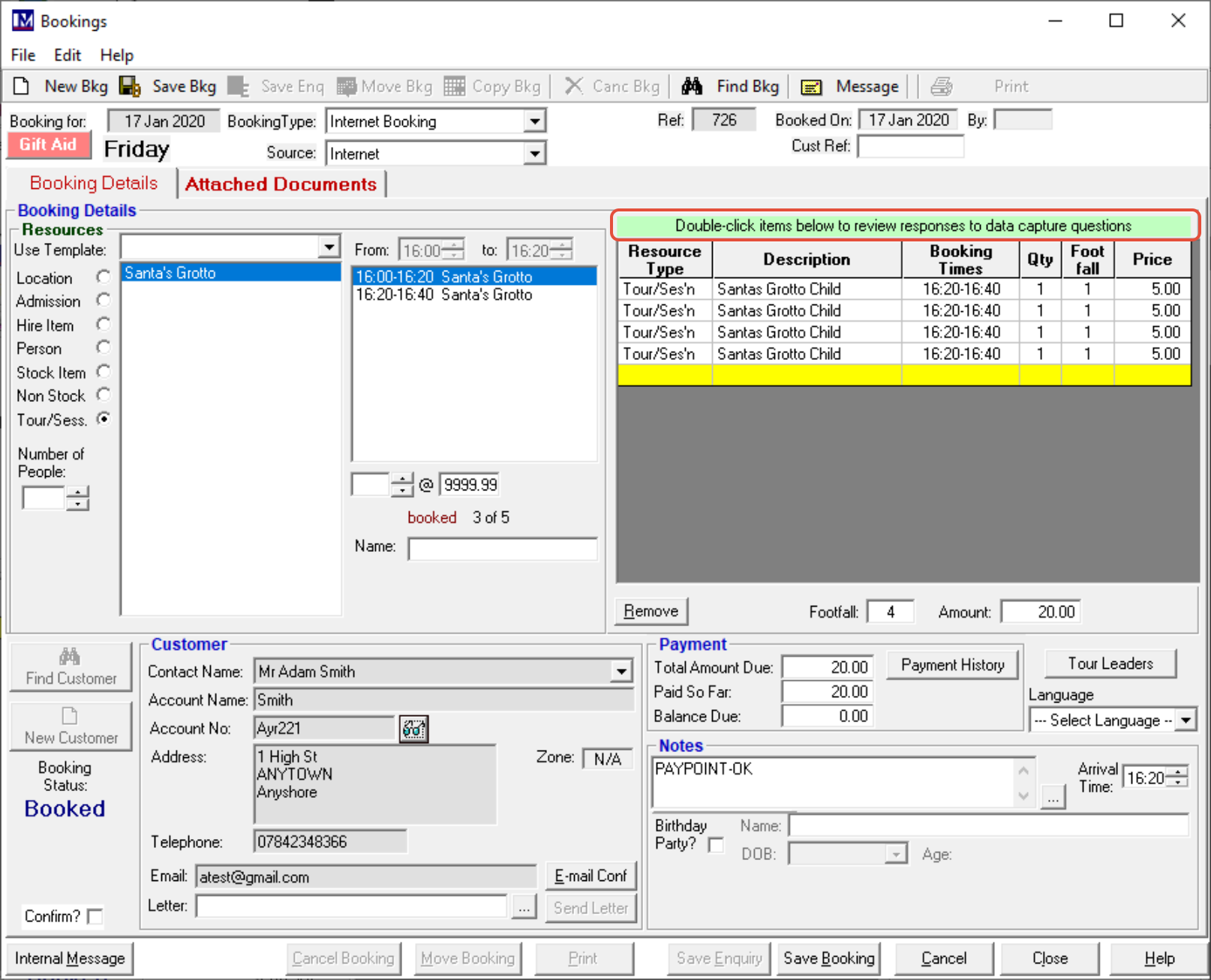 This is just an example of what the five data captures 'Types' demonstrated in this guide appear like online in a booking.
