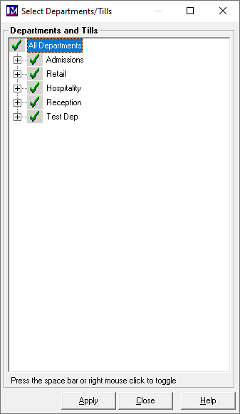 Then you could select / deselect tills as required, by right clicking them before clicking ‘Apply’.
