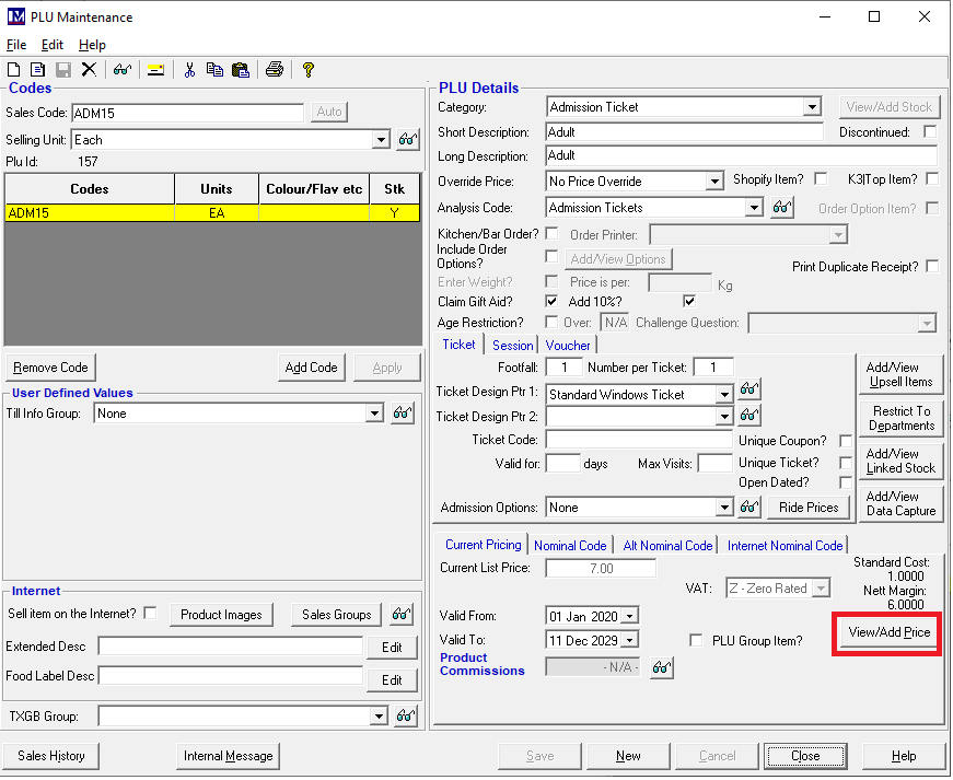 Once in the PLU Maintenance screen, click on the ‘View/Add Price’ button.