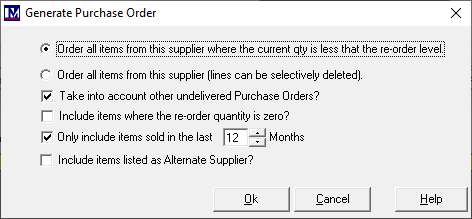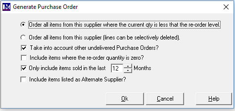 The Merac back office software has the ability to create, amend and deliver orders using the ‘Purchase Order’ module. This module enables you to enter and track the order through it’s different stages, which helps to ensure better control, accountability and auditing of the ordering and delivery of stock items in the Merac software.