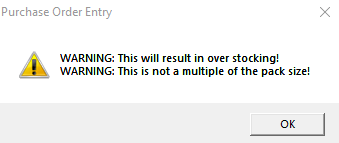Clicking 'Ok' on the above screen accepts any data entered and goes back to the main 'Purchase Order Entry' screen.