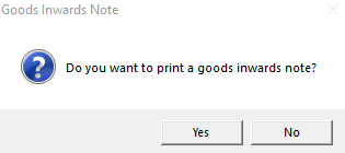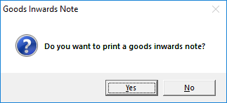 Another prompt will follow asking if you ‘want to print goods inwards receipt’.