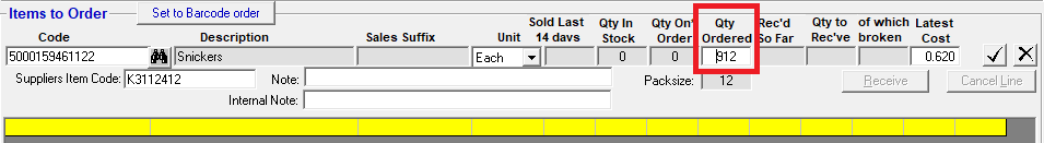 Sometimes you may receive only part of an order. For example, you may have ordered 480 of a specific stock item.